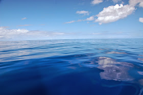… no land in site, no birds around, no people, no sounds… only the occasional sprig of sea weed in my path and the skimming of a flying fish atop the water kept me company... Only the crossing of one freighter ship would give any indication of life anywhere but aboard Glory Days for this leg of the journey. I loved it.